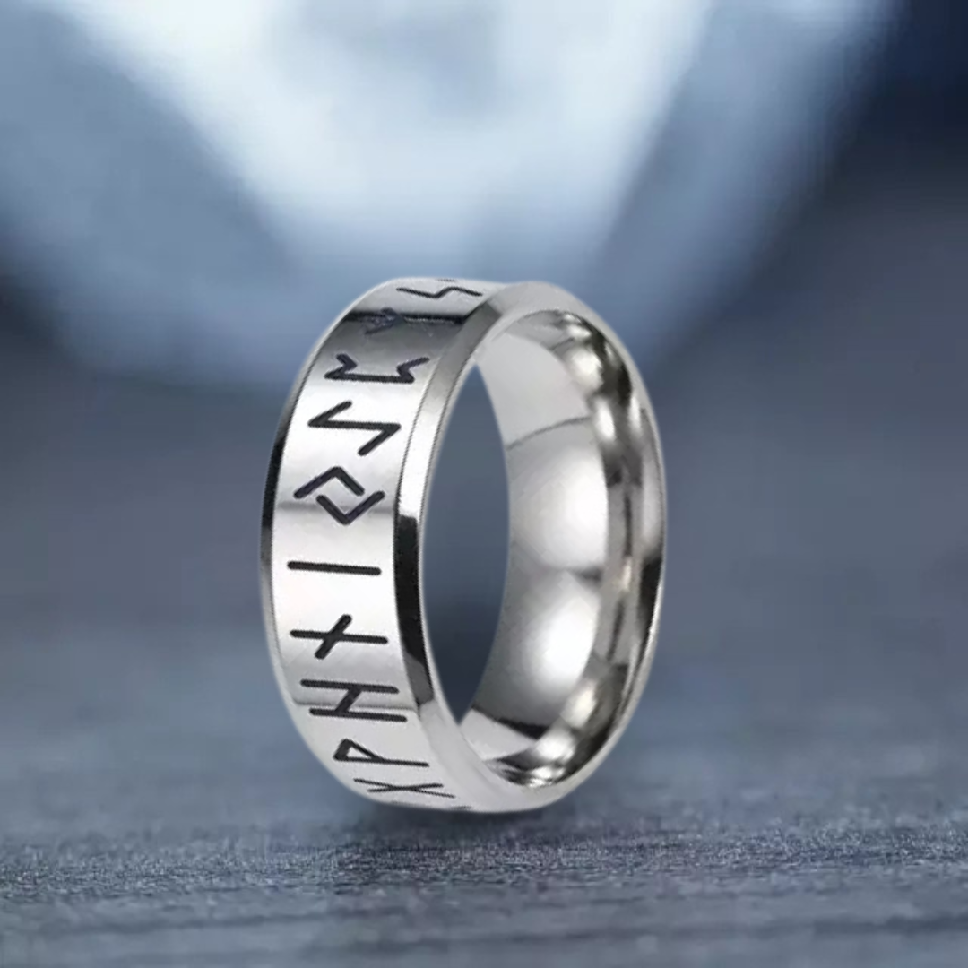 O Anel Rúnico foi desenhado para o homem que entende que a autenticidade está nos detalhes. Ele é composto por múltiplas voltas que se unem em uma única peça robusta, onde gravuras de Runas Futhark estão incrustadas, representando o conhecimento e o poder dos deuses nórdicos.