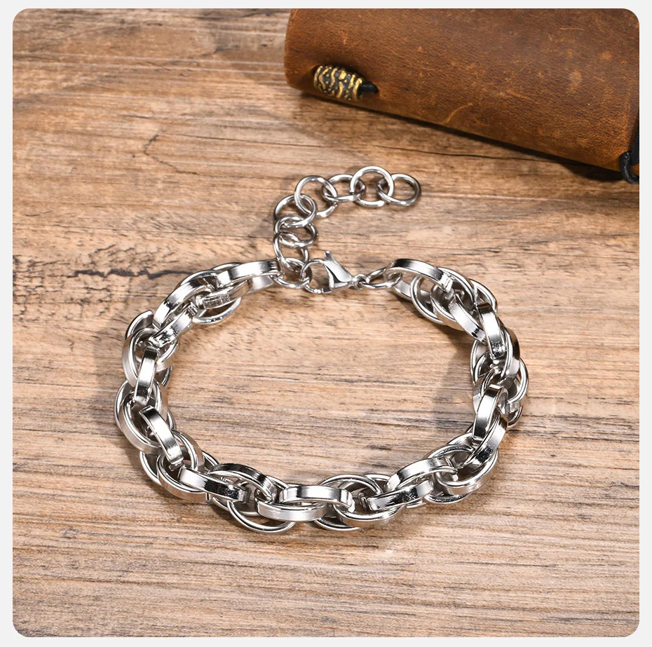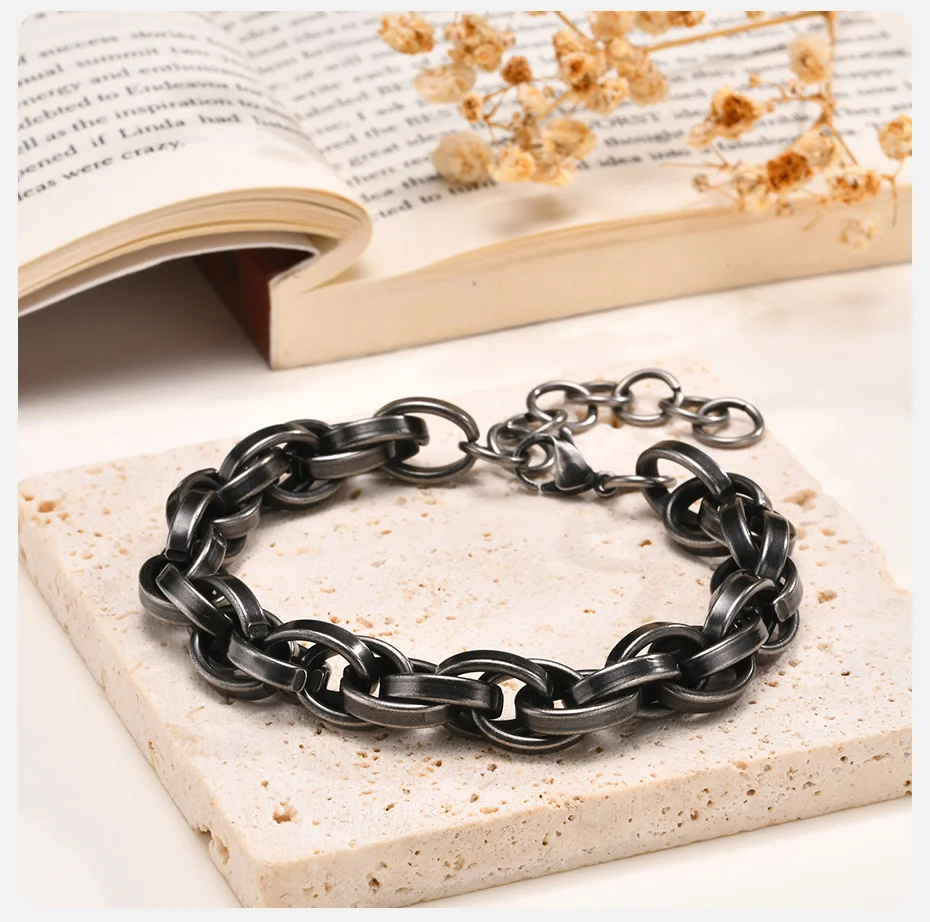 O diferencial desta pulseira é a sua construção Chunky (volumosa) e Bold (ousada), com elos de 11mm que conferem um peso satisfatório e uma presença visual inegável. O design Handmade Link Chain (Malha de Elos Feita à Mão, ou com acabamento que simula o artesanal) garante que cada peça tenha um caráter único e orgânico.